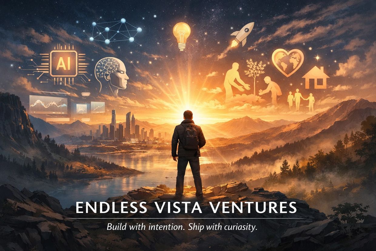 Endless Vista Ventures LLC started as a late-night idea during a time I felt stuck. I wanted to build something that mattered — a studio where I could explore AI, philanthropy, and weird, ambitious ideas.